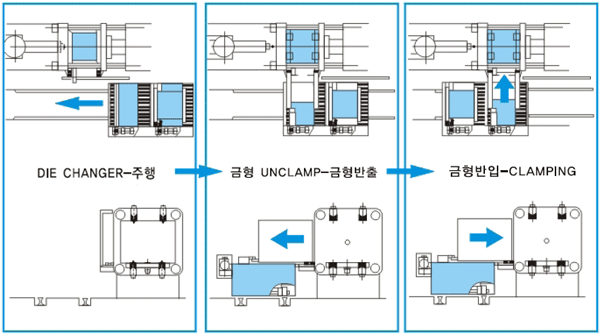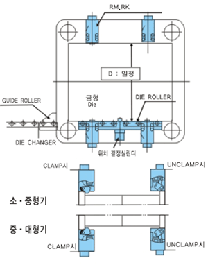 用DIE CNANGER移动,把模具移送到引导辊上,