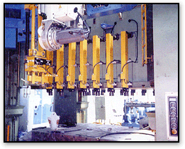 最大限度提高功能性、经济性、稳定性的综合装置 模具更换系统是冲压机、射塑机、铸造机等机械在更换模具时,最大限度提高功能性、经济性、稳定性的模具更换系统。 除了模具更换之外,还可以应用在加工机械和自动化机械领域。