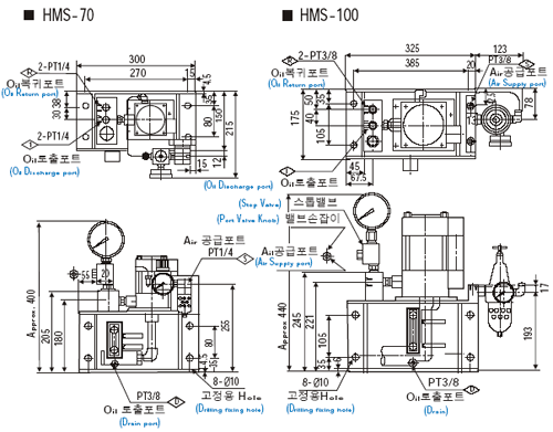 HMS POWER UNIT is a small-sized Hydraulic Device to generate very high pressure by Pump(Air-driving hydraulic pressure) If using with VF Type Non-leak valve unit, it is best desirable as the hydraulic source for Clamp System and Die Lifter. There are many kinds of Pumps, you can choose one best suitable on the terms & purposes of using.(See Pl6)