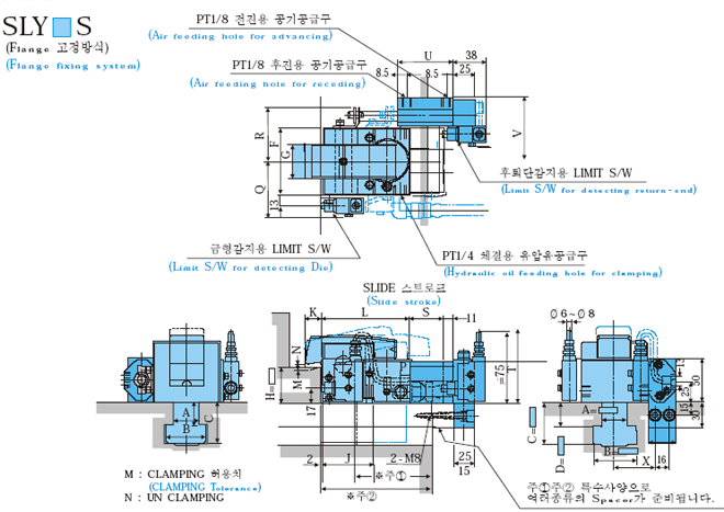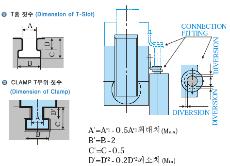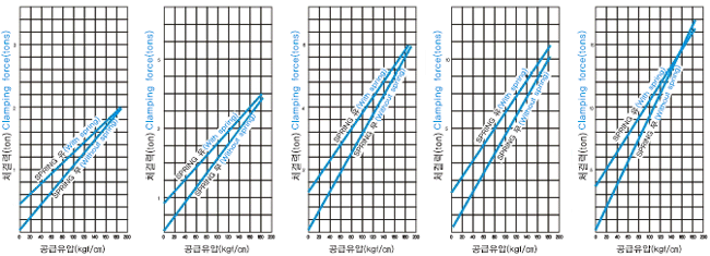 In state of open clamp, the clamp rod is retracted against Die protection due to its false operation(malfunction), so you should carry out the needed processing on the mounting base to be welded.Carry out the processing of Die plate within the limits of tolerance ±20% of Safety Stroke depending upon the die height(Length).Pay attention to the clamping force & die holding force, because its range is only ± 10%.
