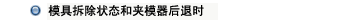 把夹模器④向UN夹模器方向松开,充分松开,与模具之间出现间隔的时候(由电力电路内的计时器控制。有时也用操作器代替计时器,使用按键,区分两个动作),电子阀门(SOL.C)开到ON,空气缸桶1D向后退方向(向上方)运动,使夹模器④后退到B的终点的时候,极点开关或者临近开关⑦启动。